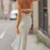 Women Summer Party Dress, Solid Color Glitter Shoulder Straps Sleeveless Open Back for Ladies
