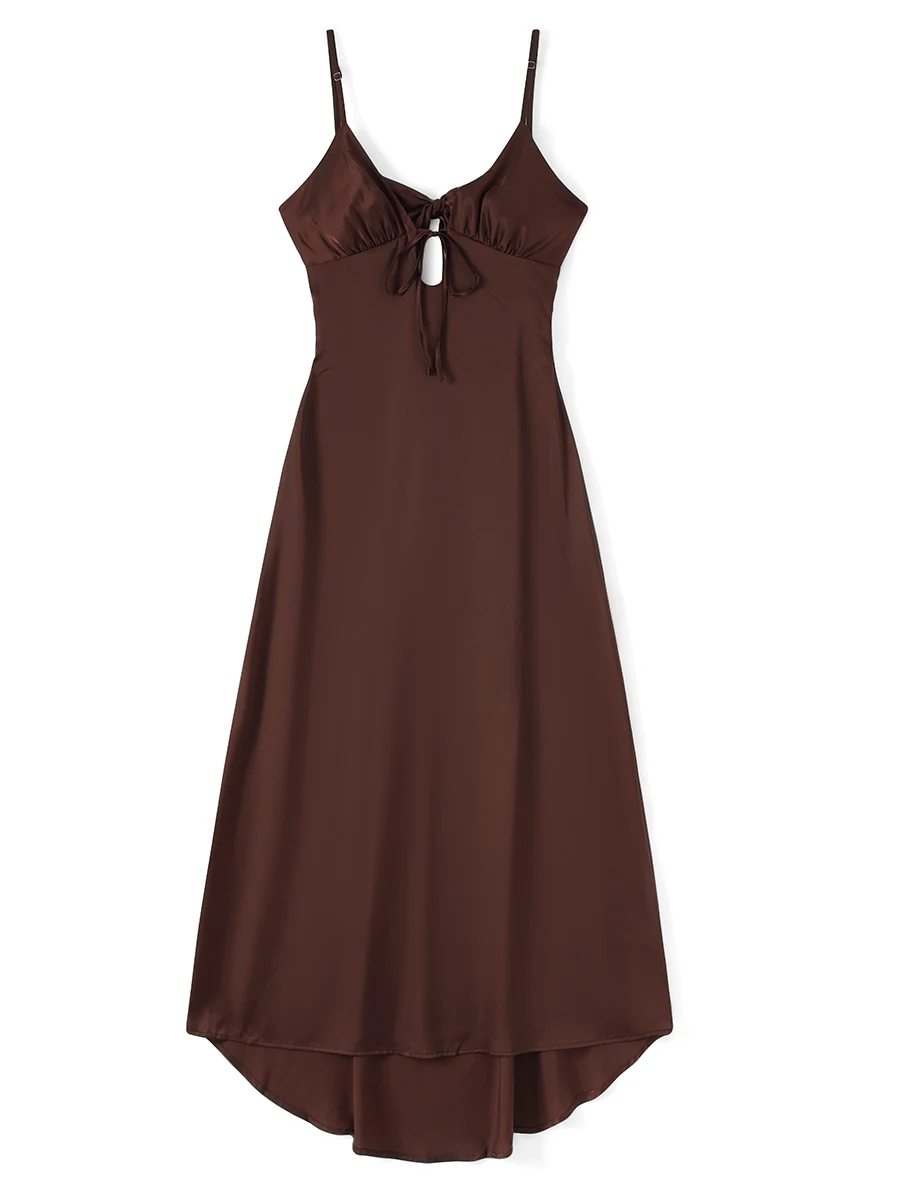Women Cami Dress Solid Color Sleeveless Tie-Up Front Backless Dress Long Dress Summer Casual Dress