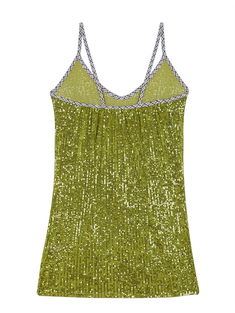 Women Spaghetti Strap Sleeveless Dress Summer Sparkle Sequins Mini Party Dress for Vacation Cocktail Beach Streetwear