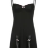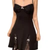 Sleeveless spaghetti strap dress, bowknot decor, contrast color, lace trim, simple and stylish.