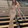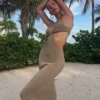 Women Summer Long Dress Sleeveless V Neck Hollow Out Bodycon Dress Bohemian Sexy Club Beach Dresses Y2K Aesthetic Clothes